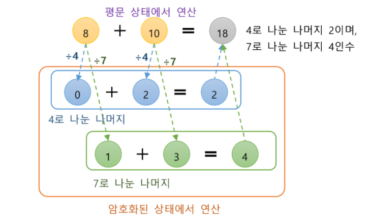 - 평문 상태의 연산 결과와 암호문 상태에서 수행한 연산 결과가 동일나.동형암호의 상세 설명