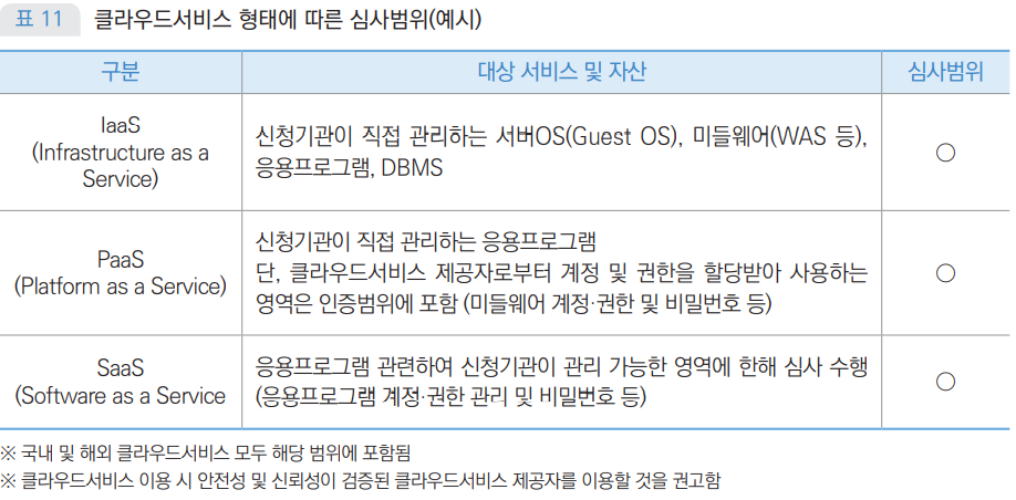 + 신청기관이 관리 가능한 OS, DB, Application 등은 포함