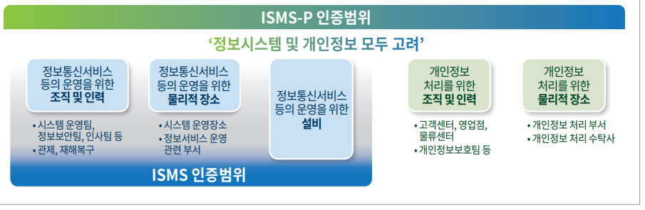> ISMS 인증범위 + 개인정보를 처리하는 정보시스템, 조직 및 인력, 물리적 장소