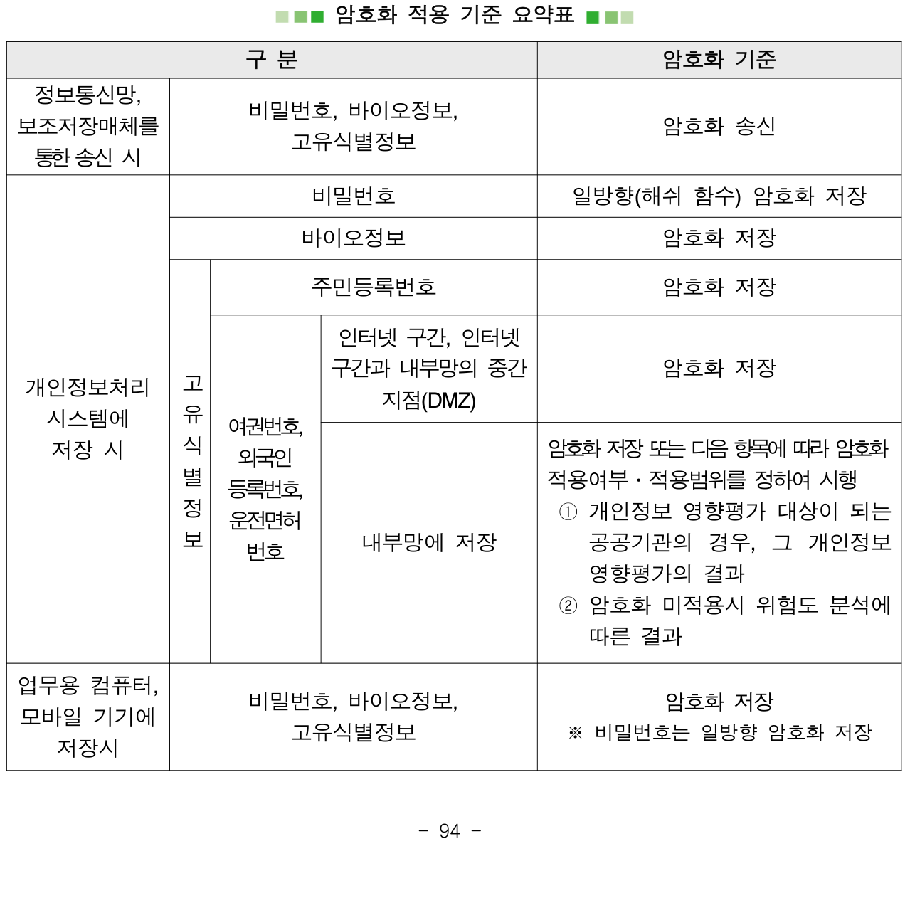 [제7조] 개인정보의 암호화■ 인터넷 구간이나 DMZ 구간 저장