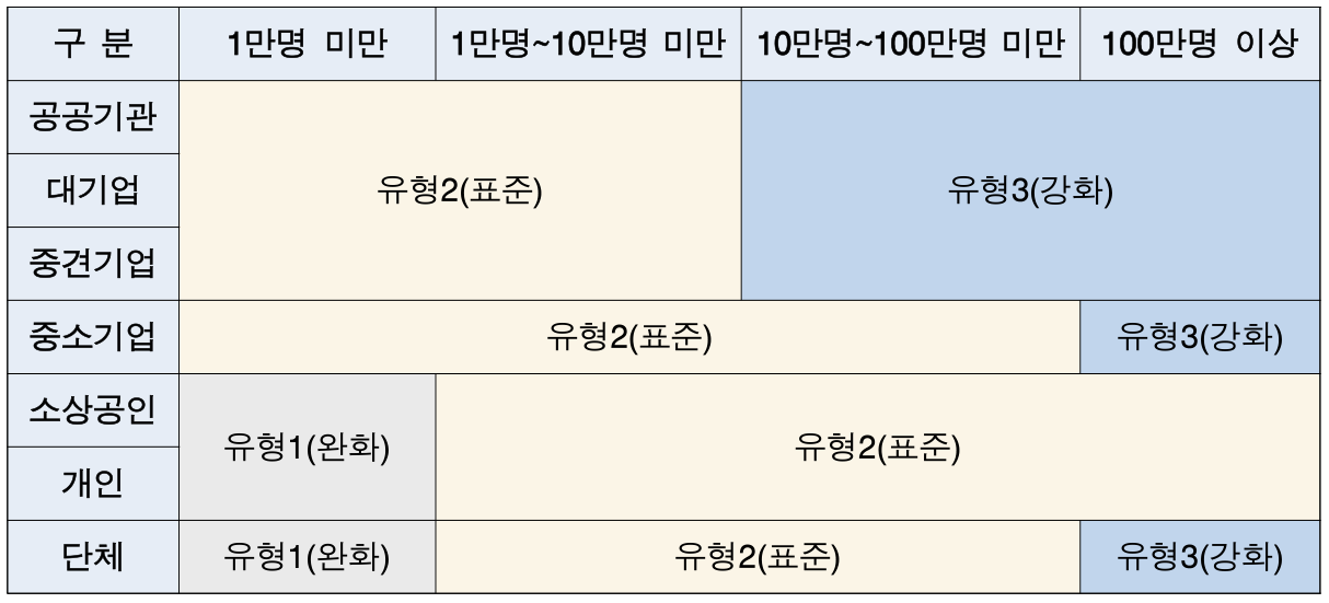 [제3조] 안전조치 기준 적용유형1 : 만미 소개단(1만명 미만, 소기업/개인/단체)