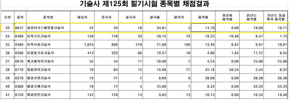 2021년 마지막 시험인 125회 정보관리는 5.57%로 다소 낮아졌습니다.