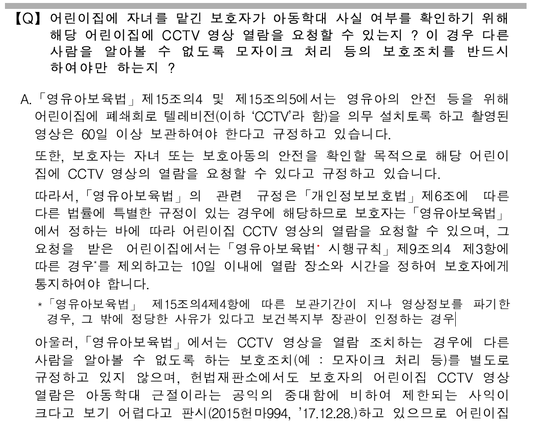 다만, 다른 법률에서 CCTV 영상 열람과 관련한 별도의 요건 및 절차