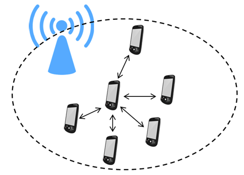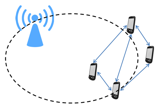 - 이동전화망에서 기지국(Base Station) 또는 코어망을 경유하지 않고 두 모바일 사용자 간 직접 통신하는 방식